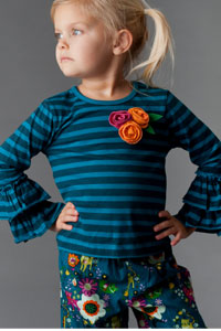 Love U Lots Purple/Teal Multistripe Tee w/Flowers