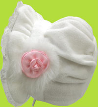 100% polyester fleece with lining of 65% polyester and 35% cotton. Bonnet has ties.