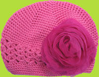 Pink Cotton Crocheted Hat w/Fuchsia Tulle Flower.