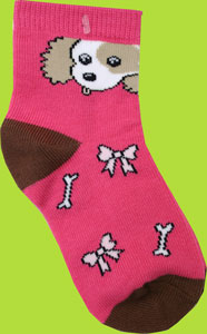 Tic Tac Toe Fuchsia Puppy Dog Quarter Socks