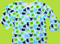 This handsome T-shirt coordinate great with styles in the Navy/Pool stripe, and with the solid Navy, Apple, Pool and Lime colors from the Baby Basics Line, The French Terry Line and the Cozie Line.