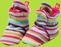 These soft 100% Cotton Booties are great. Their unique design make them really stay on little feet, so you never end up with one lost bootie. They are adjustable to fit well on slim as well as wide feet.