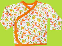 This easy to put-on long sleeve Kimono Top has a snap closure on each side. It is made of 100% cotton. This print goes great with the Lime and Orange Candy Stripes and solid Lime and Orange.
