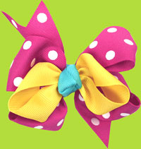Buds and Bows Hot Pink Bow w/Turquoise Knot Clip