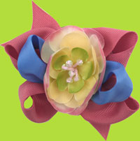 Buds and Bows Pink n Blue Bow w/Yellow Flower Clip