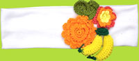 This white cotton headband has colourful crocheted flowers and bananas for a cool island feel. Pair this headband with the Tahiti Lanie Dress for a fresh summer look! Made in the U.S.A. of 100% cotton.
