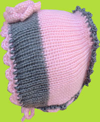 Pink and Heather Grey Handknit Bonnet w/Pink Flower