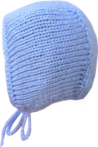 Hand knit in the U.S.A. Yarn used is Bernat Softee Baby Acrylic. Machine washable and dry-able.Bonnet has ties.