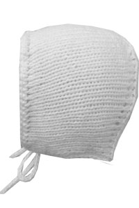 Hand knit in the U.S.A. Yarn used is Bernat Softee Baby Acrylic. Machine washable and dry-able.Bonnet has ties.
