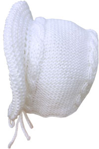 White Hand Knit Bonnet with Braided Pattern