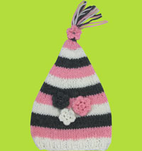 Striped Hand Knit Baby Elf Hat w/Flowers