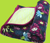 This soft 100% Cotton Blanket is likely to become your baby's favorite blanket. It measures 30" x 40" and it has two layers. One side has the Moonflower print, the other side has Lime Candy Stripes.