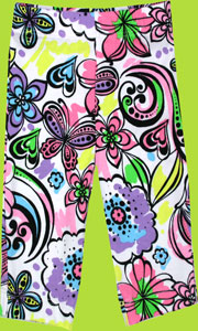 These fabulous leggings are made in the U.S.A. of 96% cotton, 4% lycra. They pair great with the Graffiti Floral Lettuce Edge Screen Tee.