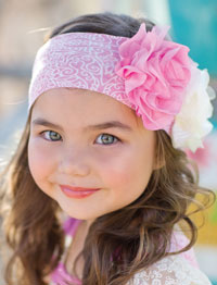 Adorable headband in cotton knit decorated with organza flowers. Made of 95% cotton, 5% spandex.