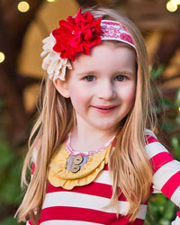 Stretchy headband in winter white with deep red kaleidoscope print. Made in the U.S.A. of 95% cotton, 5% spandex. Decorated with deep red and beige velvet flowers centered with sequins.