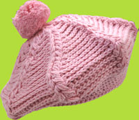 2 H Hand Knits Light Pink Beret w/Braids and PomPon