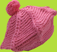 2 H Hand Knits Wild Orchid Beret w/Braids