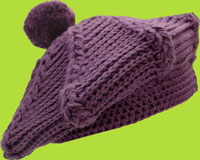 2 H Hand Knits Eggplant Beret w/Braids and Pom Pon