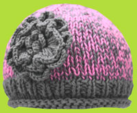 Pewter and Wild Orchid Hand Knit Girls Hat w/Flower