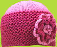 Pink and Fuchsia Hand Knit Girls Hat w/Flower