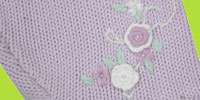 These lavander knit pants are super cute with their fringed hem and beautiful embroideries as well as crochet applique. 100% cotton.