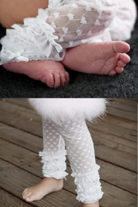 Soft stretch lace leg and arm Huggers trimmed in pretty rows of ruffles. Packaged in a matching lace wash bag and perfect for gift giving.