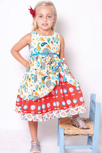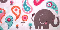 Beautiful netral colored elephant and paisley printed roushed up to reveal a bright red bold floral printed skirt with paisley hem. Made of 100% cotton. Please note that the Elephants are Brown and not Grey as it appears on the photo. The Blue is an Aqua Blue. Colors are a lot prettier than it appears in the photo.