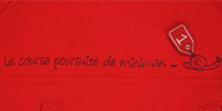This adorable Sweat Shirt has cute embroideries on the back of a Bear in an Air Plane. On the front is embroidered a snail with a number 1 sign and before it is written "la course poursuite de miniman ...".