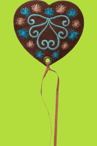 This brown suede embroidered heart on 1 3/4" pinch clip will add some flair to your hair! For ages 12 years and up.