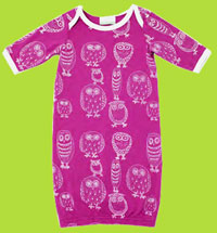 Soft puple newbie Gown - should fit babies 0-6 months of age. Great as a baby gift set with the matching organic hat * 50% organic cotton, 48% bamboo fiber, and 2% spandex * Machine washable Graphics printed with water based inks. *certified organic fabric: organic interlock cotton + certified/tested bamboo fiber *meets all CPSIA regulations + testing requirements