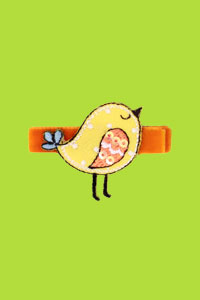 Yellow Sweet Baby Bird on a 1 3/4" Orange Velvet Covered Pinch Hair Clip.