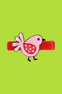 Pink Sweet Baby Bird on a 1 3/4" Red Velvet Covered Pinch Hair Clip.