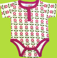 Made by socially responsible "fair trade" manufacturer of 100% ultra-soft organic cotton with Berry rib trim. Snaps for easy diaper change.