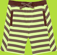 Handsome and comfortable shorts in fern green and chocolate stripes. Made of 100% combed cotton. Elastic waist.