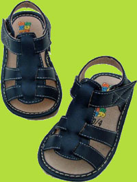 Very comfortable and stylish sandal with non-slip squeaky rubber soles for infant and toddler pre-walkers and walkers.