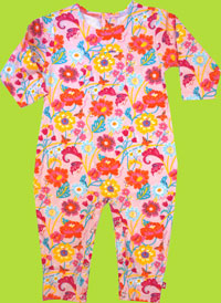 This soft 100% Cotton Coverall is very colorful and fun. It has a cute pocket on the front and it has snaps for easy diaper change. It coordinates well with a number of the Zutano styles and colors, and especially well with the Fuchsia Bold Stripe print.