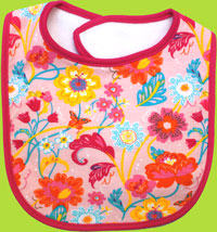 This 100% Cotton Bib is lined with Cotton Terry and is trimmed in bright Cotton Interlock. Velcro patches fasten the bib around baby's neck.