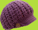Eggplant Crochet Hat w/Patches Reg. $18.00, SALE $10.00. Hand Crocheted of 100% cotton. Available in children's sizes 3-6 months, 6-12 months, 12-24 months, and 6-8 years. |