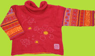 Clayeux "Mia" Pullover (infant and toddler) reg. $74.00, sale 10.00 This adorable pullover is extremely soft and comfortable. It is made in France of 72% acrylic, 23% nylon and 5% wool. Available in size 12 months. |
