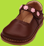 Brown Peony Mary Jane w/ Pink Flower Reg. $30.95, SALE $15.00 This Brown Maryjane has an easy-to-use velcro strap closure and a lovely soft pink peony flower on the toe. Available in sizes 4, 5, 7, 9, 10, 11 and 12. |