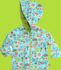 This fun reversible zip-up hoodie can be worn in the print or reversed to be worn in solid moss. Coordinates well with solid lime, chocolate, mandarin, moss and pool solid colors from Zutano. Made of 100% cotton. Imported.