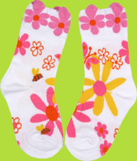 A 3D Flower on the ankle - and don't miss the tiny ladybugs. 80% cotton, 18% nylon, 2% spandex.