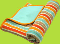 This soft 100% Cotton Blanket is likely to become your baby's favorite blanket. It measures 30" x 40" and it has two layers. One side has the Miami Stripe, the other side has solid Aqua.