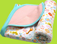 This soft 100% Cotton Blanket is likely to become your baby's favorite blanket. It measures 30" x 40" and it has two layers. One side has the Jungle Dream print, the other side has Pink Candy Stripes. Add the Zutano Zutanimal Tangarine Lion Plush Rattle for the perfect shower gift!