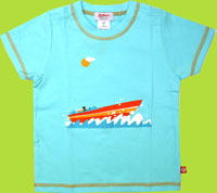 This handsome speed boat t-shirt coordinates great with the Surfin and Miami Stripe Prints. It also coordinates great with the Pool and Mandarin from the french cotton terry line.