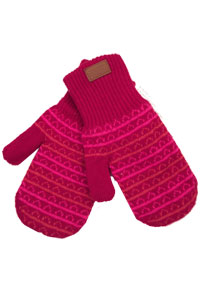 Melton Berry Striped Patterned Mittens