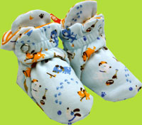 These soft 100% Cotton Booties are great. Their unique design make them really stay on little feet, so you never end up with one lost bootie. They are adjustable to fit well on slim as well as wide feet.