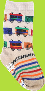 Your little engineer wil be chanting All Aboard in these fun socks! Made of 75% Cotton, 20% Nylon and 5% Spandex. These socks have a gripping pattern on the sole.