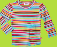 This super soft and colorful fitted long sleeve t-shirt is made of 100% cotton. It coordinates great with the solid pink, aqua and pool leggings, the aqua and fuchsia velour leggings and the tangerine, pink, chocolate and pool cotton sherpa pants for toddlers.